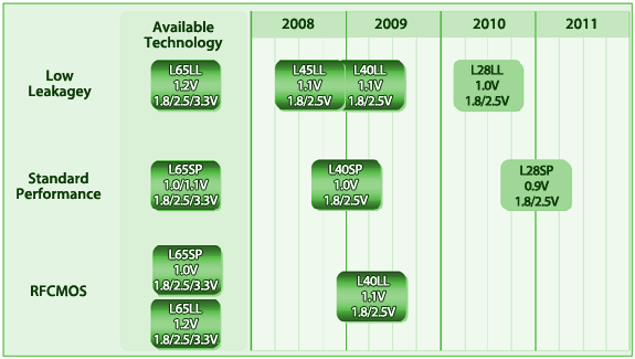 | As a world leading pure-play foundry, UMC offers comprehensive design resources that support our cutting-edge process technologies. Silicon verified libraries (standard cells and I/Os) optimized to our technologies are available free-of-charge from several leading vendors. UMC has also worked internally and with third party partners to deliver an extensive portfolio of IP that are optimized for portability and cost. These range from fundamental IP such as cell and I/O libraries to more complex processor and application- specific standard cores. And, because silicon verification is such a critical issue for customers' deep sub-micron designs, UMC has launched the Silicon Shuttle multi-chip test wafer program. UMC also makes available SRAM memory compilers to support all of its mainstream processes. |