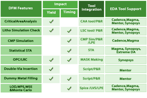 | Given the deep sub-micron design challenges that circuit designers are facing, UMC Reference Design Flows provide customers with EDA design methodologies that reduce time-to-market by enabling manufacturability. The UMC Reference Design Flows incorporate 3rd-party EDA vendor's baseline design flows to address issues such as timing closure, signal integrity, power consumption and design for manufacturability and adopt a hierarchical design approach built upon silicon validated process libraries. The UMC Reference Design Flows cover from RTL coding all the way to GDS-II generation and support Cadence, Magma, Mentor and Synopsys EDA tools. All of these tools have been correlated to UMC silicon and can be interchanged for added flexibility. |