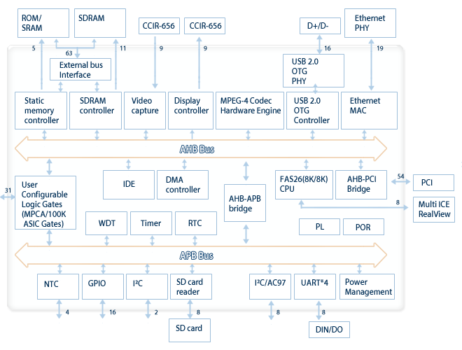 FA526(Provided by Faraday Technology), 240MHz 8K I-cache and 8K D-cache |